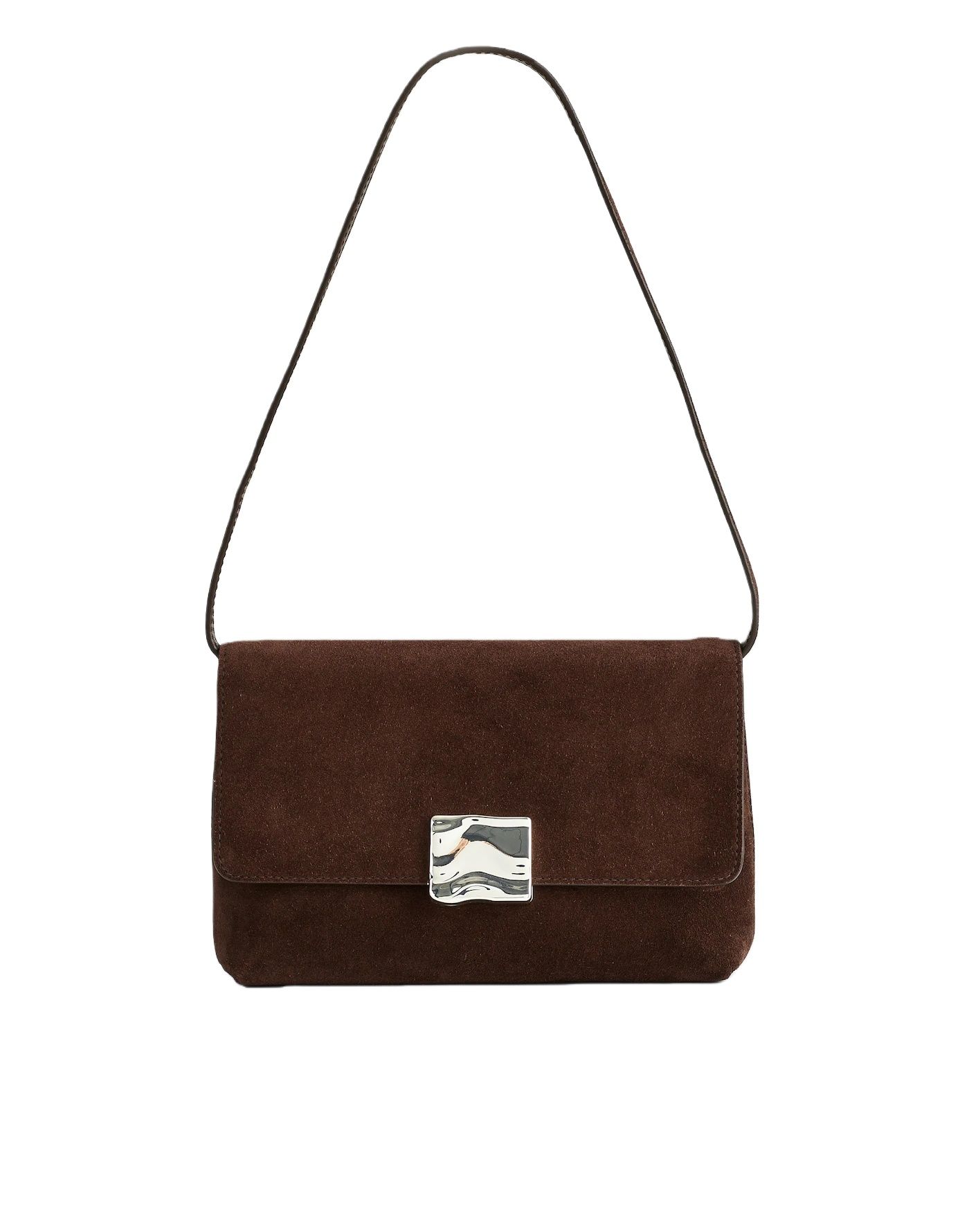 this limited-edition collaboration featuring sculpted hardware inspired by urban landscapes, architecture and modern art. Coming in a luxe Italian suede, this shoulder bag features an organic metal statement closure. Plus, it's a two-for-one: the adjustable crossbody strap can be detached to convert it into a chic clutch.