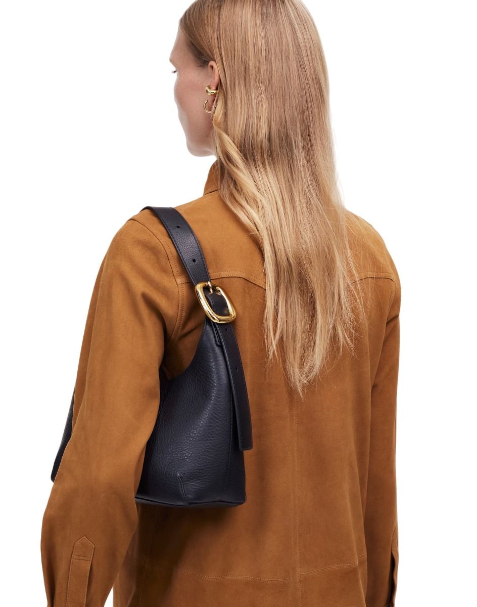 to bring out the natural pebbling, and then hand cut into the ultimate shoulder bag. Crafted with artisan details, this style has a secure magnetic closure. It's perfectly sized to hold a phone, wallet, keys—plus, it has an interior pocket and sculptural buckle.