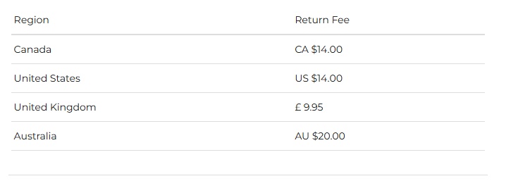 • Prefer a refund to your original payment method? A small processing fee will be deducted from your refund as shown below: