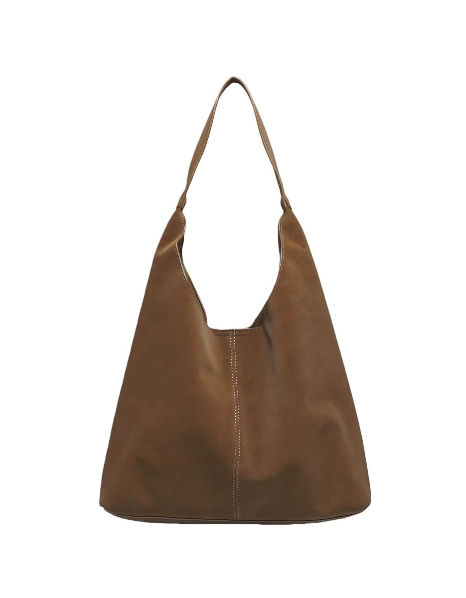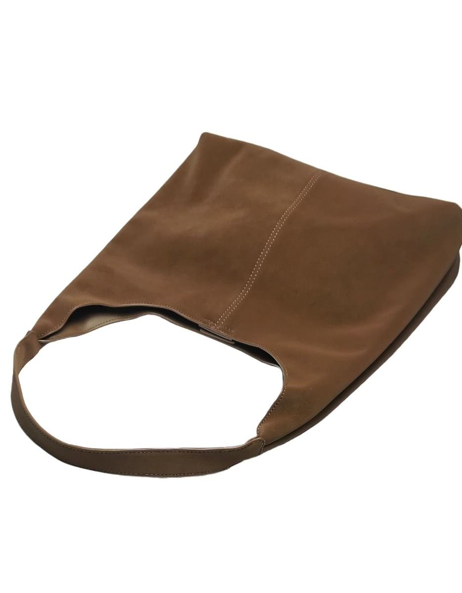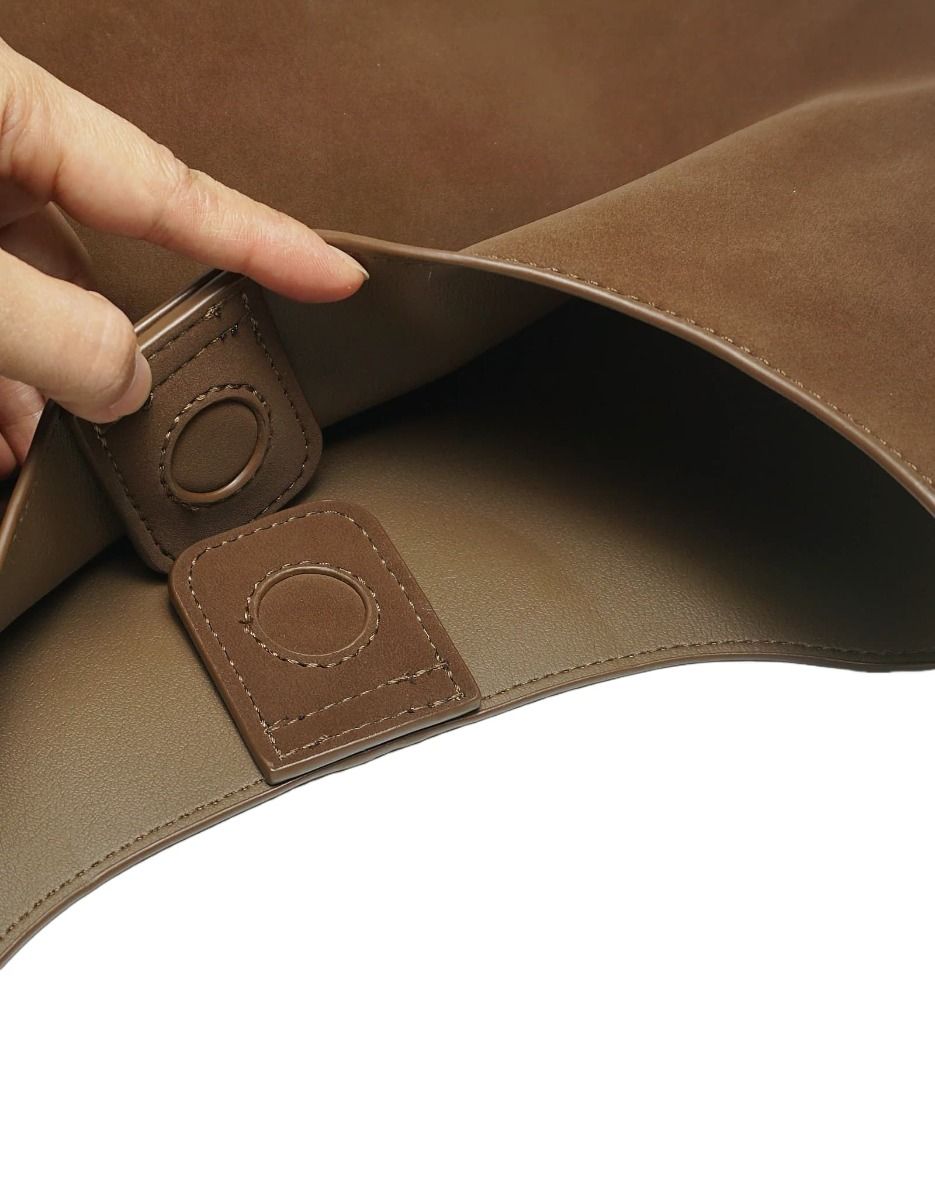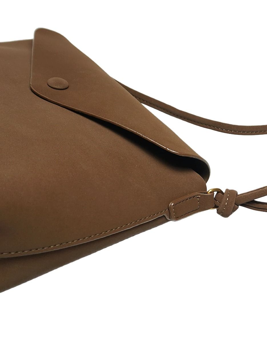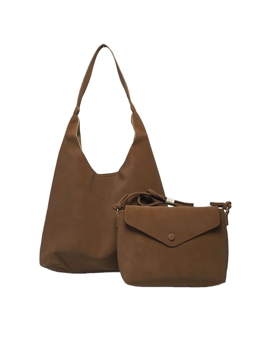 Introducing Gigi, the matte version of our "Bella Bag"—a versatile two-piece set that combines sophistication with practicality. The main hobo bag features a relaxed, minimalist design crafted from luxurious suede-like material, perfect for everyday use. It is accompanied by a coordinating smaller crossbody bag with an envelope-style flap closure and decorative button detail. The set's rich brown tone offers year-round wearability and effortless style.