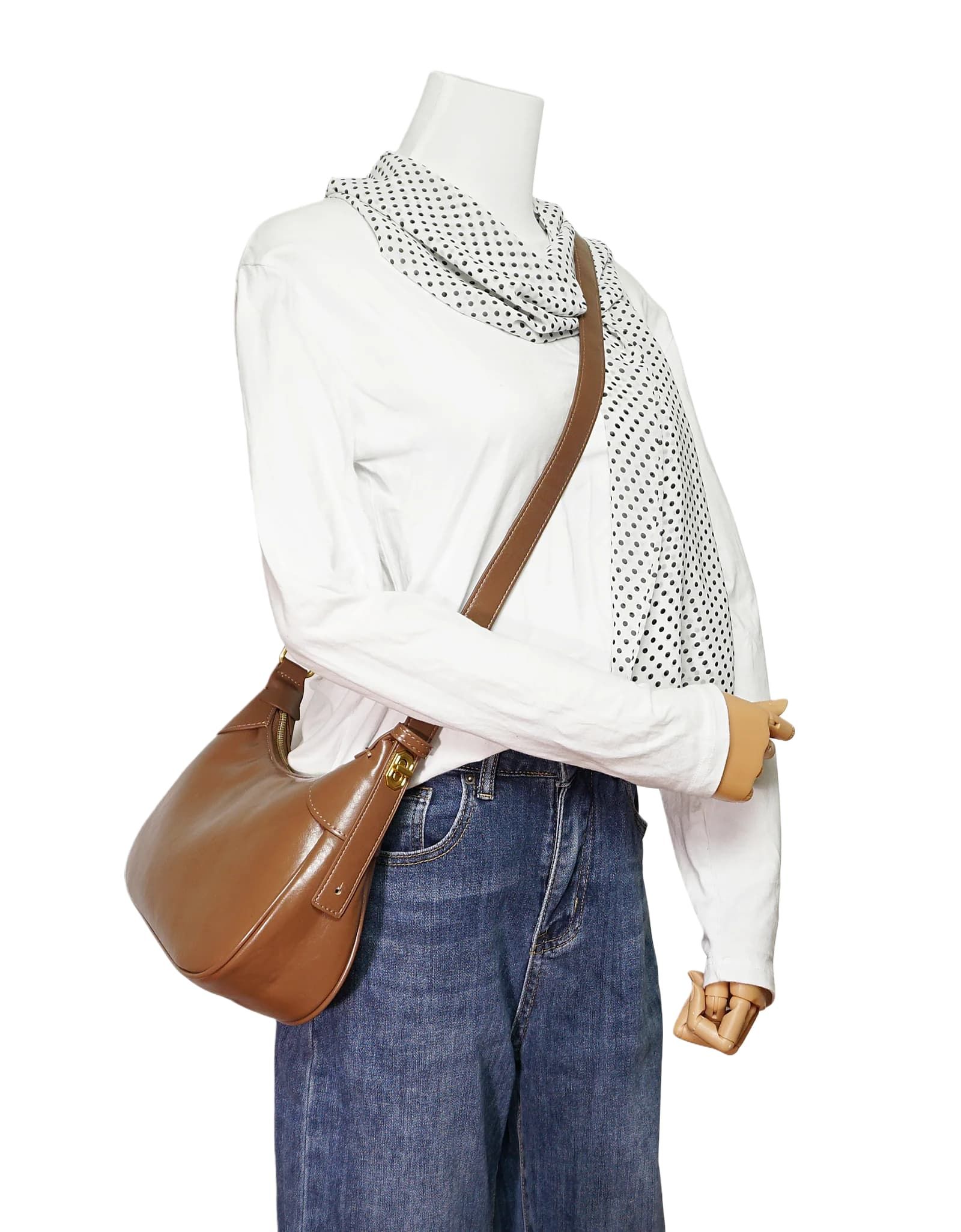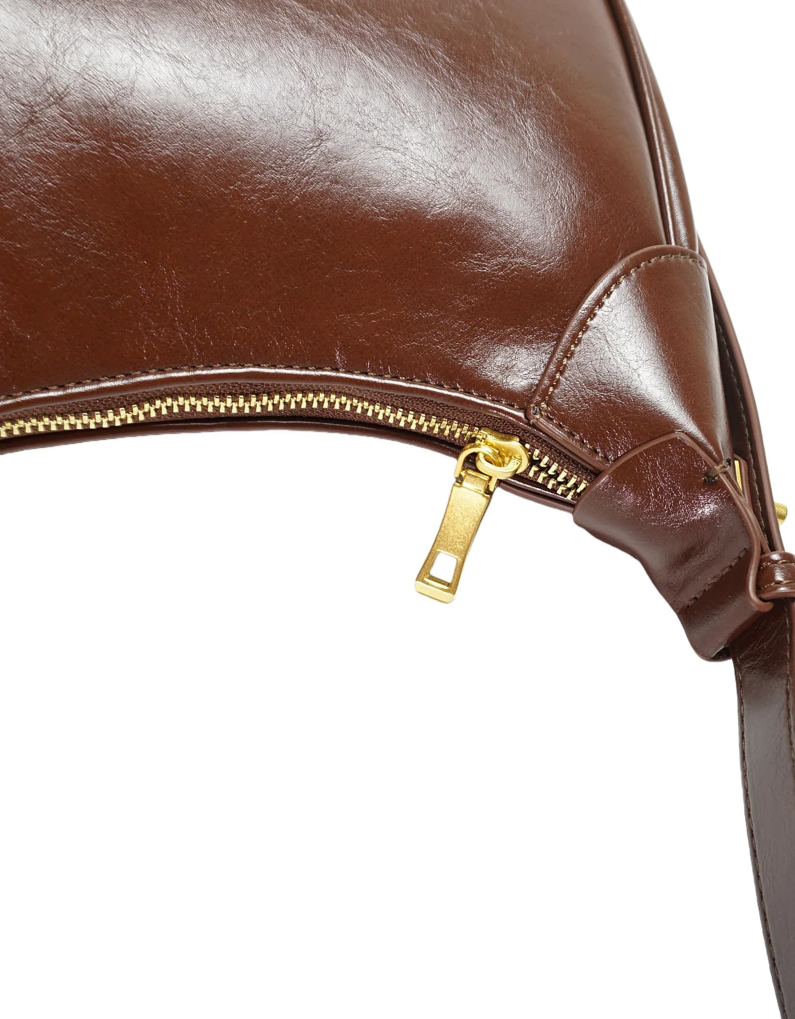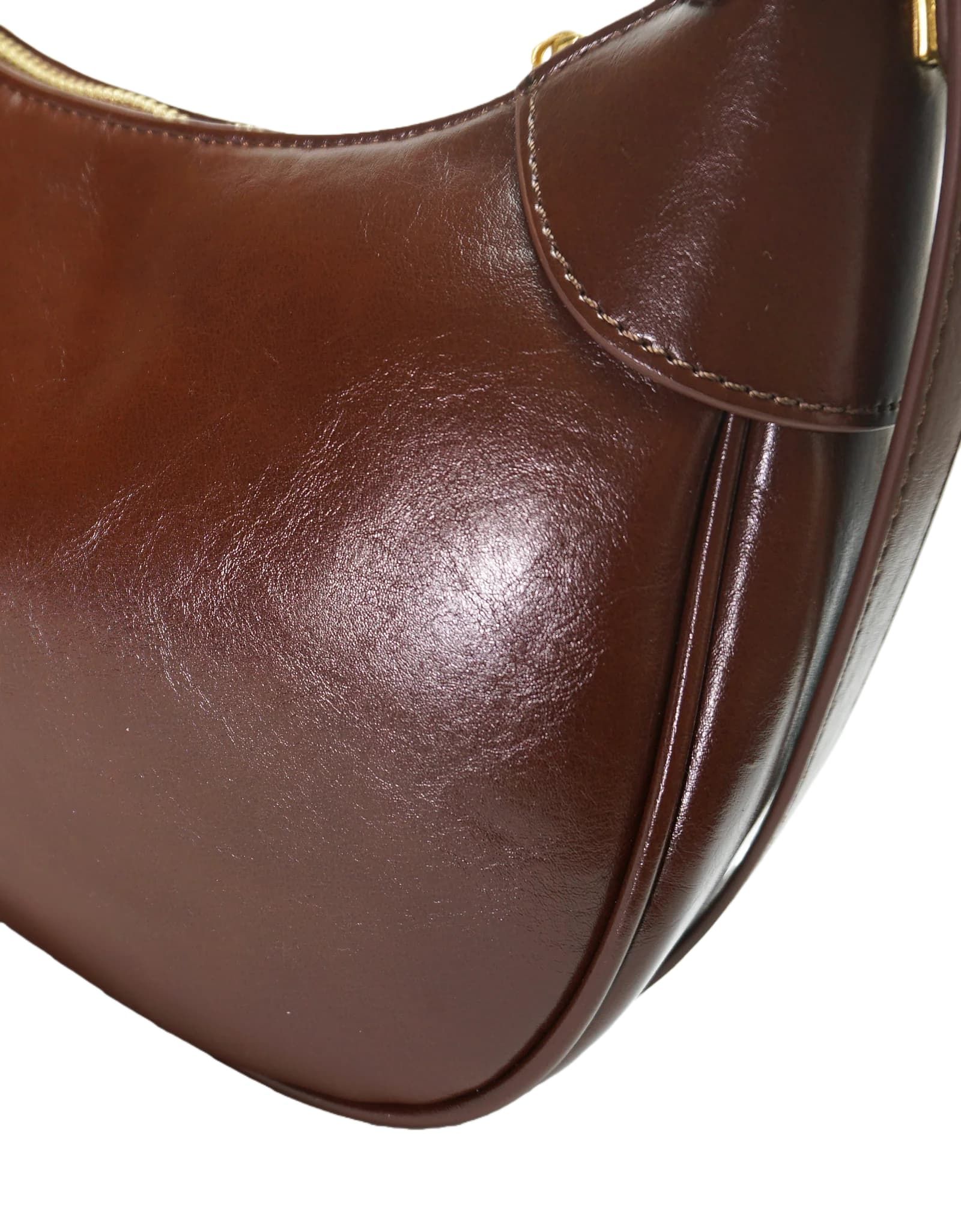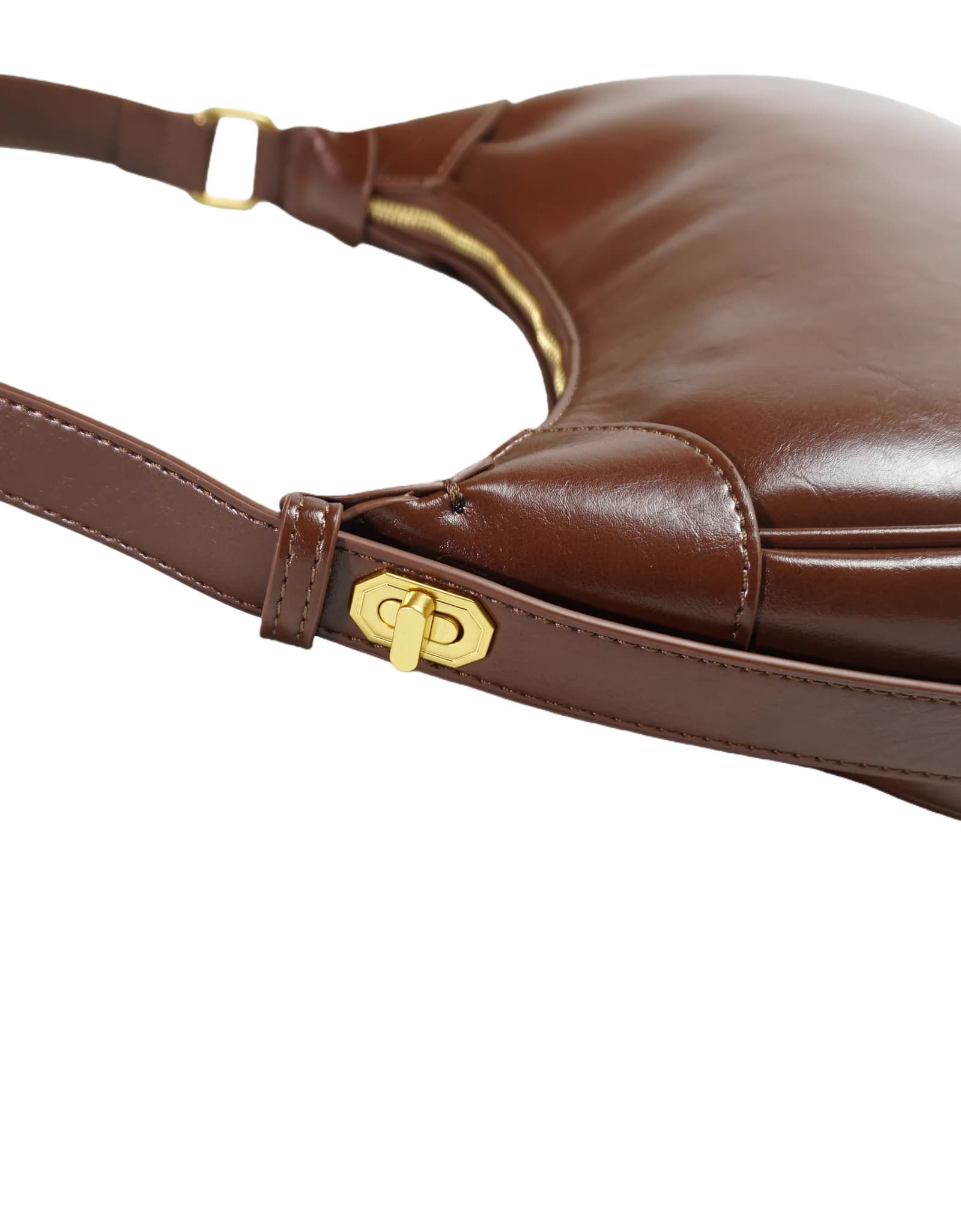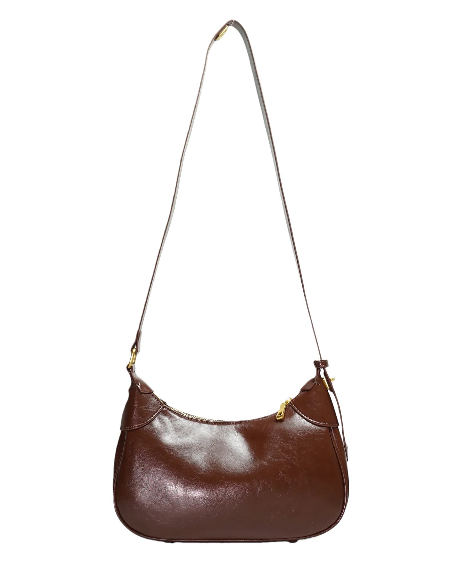 Sabrina is a delightful cup of hot espresso destined to make heads turn. With a splash of gold hardware embellishment, this handbag is every shoulder bag lover’s dream and reminiscent of your favorite luxury brands. Made with high quality cowhide leather in a range of rich colors, Sabrina is convertible with an adjustable strap that extends to transform this handbag into a crossbody style. With multiple compartment space and a zip-top for extra security, this handbag is a statement piece constructed for everyday use, be it trips to the cafe, late night dinners, or local outings. Explore your go-to spots in vintage style with Sabrina in hand!