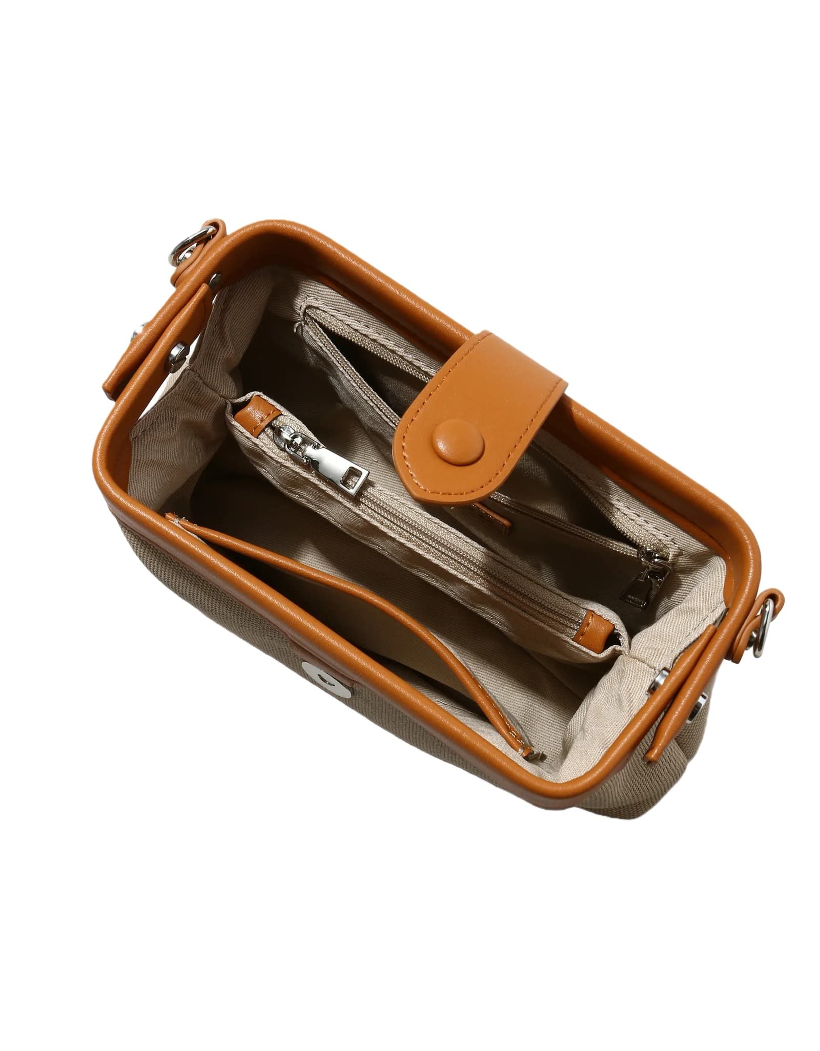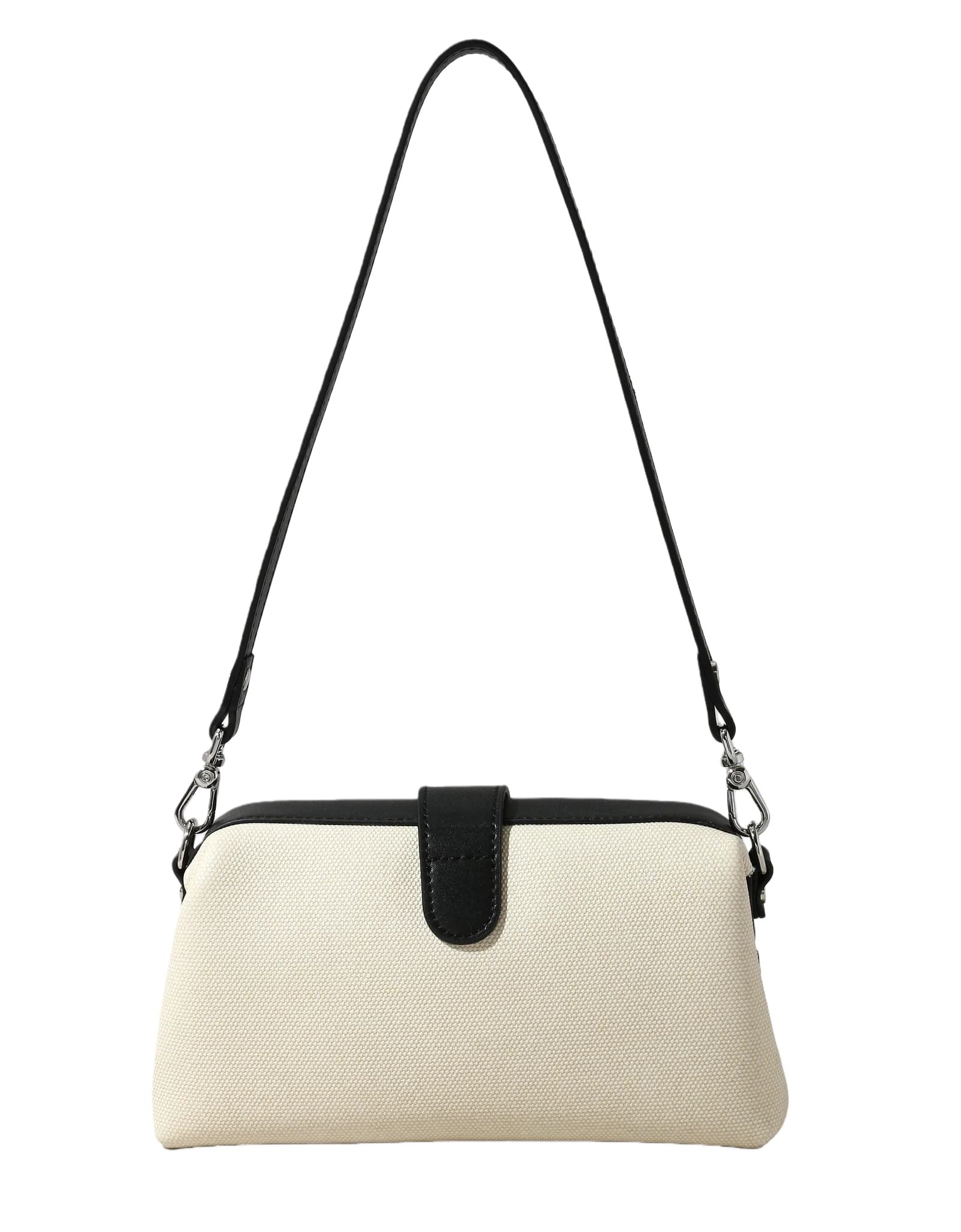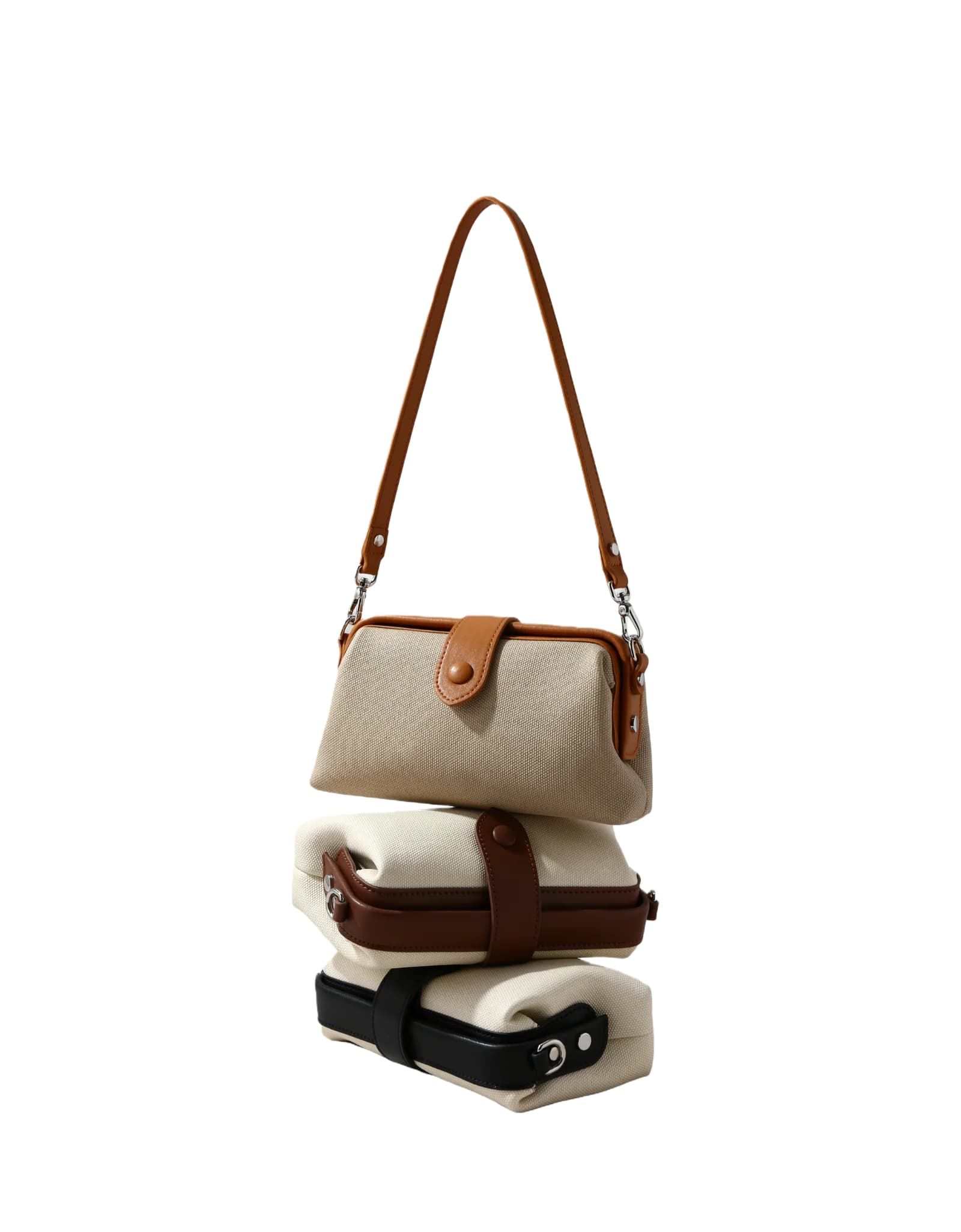 - Includes a mini shoulder strap and adjustable crossbody strap